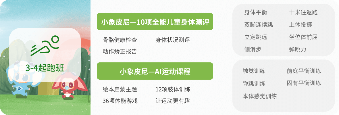 小象皮尼拥有多年儿童教育行业运营经验,将儿童体适能教育与高新科技相结合,打破传统体适能馆的诸多弊端,创造更专业的体适能运动馆,让孩子爱上运动。